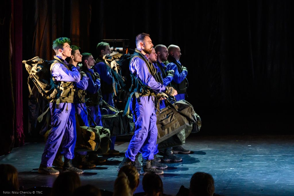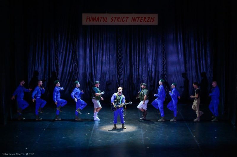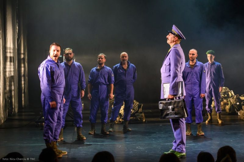 Un festival de teatru, cu numeroasele sale evenimente desfășurate pe parcursul mai multor zile și adesea în paralel, în cazul spectacolelor, aduce în fața publicului atât montări ale unor texte celebre, cât și producții bazate pe lucrări mai puțin cunoscute. Este, desigur, imposibil să le cunoști pe toate. Dar tocmai aici se află una dintre frumusețile unui produs artistic: posibilitatea de a te apropia de el fără să știi nimic sau aproape nimic și de a-l descoperi în mod direct, în sala de teatru, la film, în lectură, într-un muzeu sau în orice alt spațiu al întâlnirii cu noutatea. Astfel înveți lucruri inedite, care îți îmbogățesc cultura generală și îți oferă bucuria autentică a descoperirii. Așa mi s-a întâmplat în cazul acestui spectacol (Am bombardat New Haven, Teatrul Național Cluj-Napoca), când, o spun cu toată sinceritatea, am ales să merg atras mai întâi de titlu. Mi s-a părut pur și simplu atractiv, provocator, iar faptul că spectacolul era găzduit într-un spațiu neconvențional, scena Operei Naționale din București, a reprezentat încă un argument decisiv. Ulterior, am început documentarea: am căutat informații despre text, despre autor și despre povestea pe care o propune. Autor al romanului Catch-22, care a fost și tradus în limba română, Joseph Heller a scris în 1967 We Bombed in New Haven, în plin Război din Vietnam. Piesa urmărește un grup de actori obligați să joace într-o farsă grotescă despre război, în timp ce comandamentul militar încearcă să controleze și să rescrie narațiunea. Spectacolul devine o demonstrație despre felul în care realitatea poate fi regizată pentru a justifica violența. Problema pe care o consider eu referitoare la acest gen de text este tocmai aceea că sunt destul de nișate, iar prin traducere li se poate pierde sensul originar. De ce spun asta? În general, pentru că prezintă o realitate care rezonează foarte bine cu poporul american, având anumite tușe și elemente de limbaj, chiar și comic, care sunt specifice Statelor Unite, popor ce fost afectat de acest război. Putem întări cu un exemplu, ca să rămânem în sfera militară, și anume serialul M.A.S.H., produs între 1972 și 1983, despre Războiul din Coreea. Producția a fost difuzată și la noi, personajele sunt amuzante, râzi, dar, din nou, sunt mult prea multe tușe ce țin strict de poporul american. Înainte de a discuta despre spectacolul de la Cluj-Napoca, e important să menționăm că și România a avut un spectacol inspirat din sfera militară și anume Am să mă întorc bărbat, jucat pe la începutul anilor 2000, pe muzica celor de la Vama Veche, inspirat fiind din realitatea vieții de armată din țară.