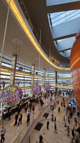 În afara scenei principale – pe care am avut șansa să o văd și din culise, într-un tur în care am descoperit fascinată toate ungherele, mai există altele cinci, birouri, săli de repetiții pentru muzicieni și balerini, magazii, alte anexe, perimetre de relaxare, un ambient care dă artiștilor oportunitatea de-a se concentra exclusiv asupra muncii lor. Fosa orchestrei e una dintre cele mai mari din lume, au loc acolo 110 muzicieni! La lista aceasta de superlative se adaugă încă unul: orchestra regală daneză este, istoric, cea mai veche din lume, prima menționare e din 1448! Teatrul Regal/ Det Kongelige Teater (fondat la 1748) e un complex al artelor spectacolului, reunește Opera veche (o foarte frumoasă clădire de patrimoniu), Opera House (aceasta despre care scriu) și Royal Danish Playhouse (Teatrul Regal în sensul dramatic). E ceva istorie artistică adunată aici!